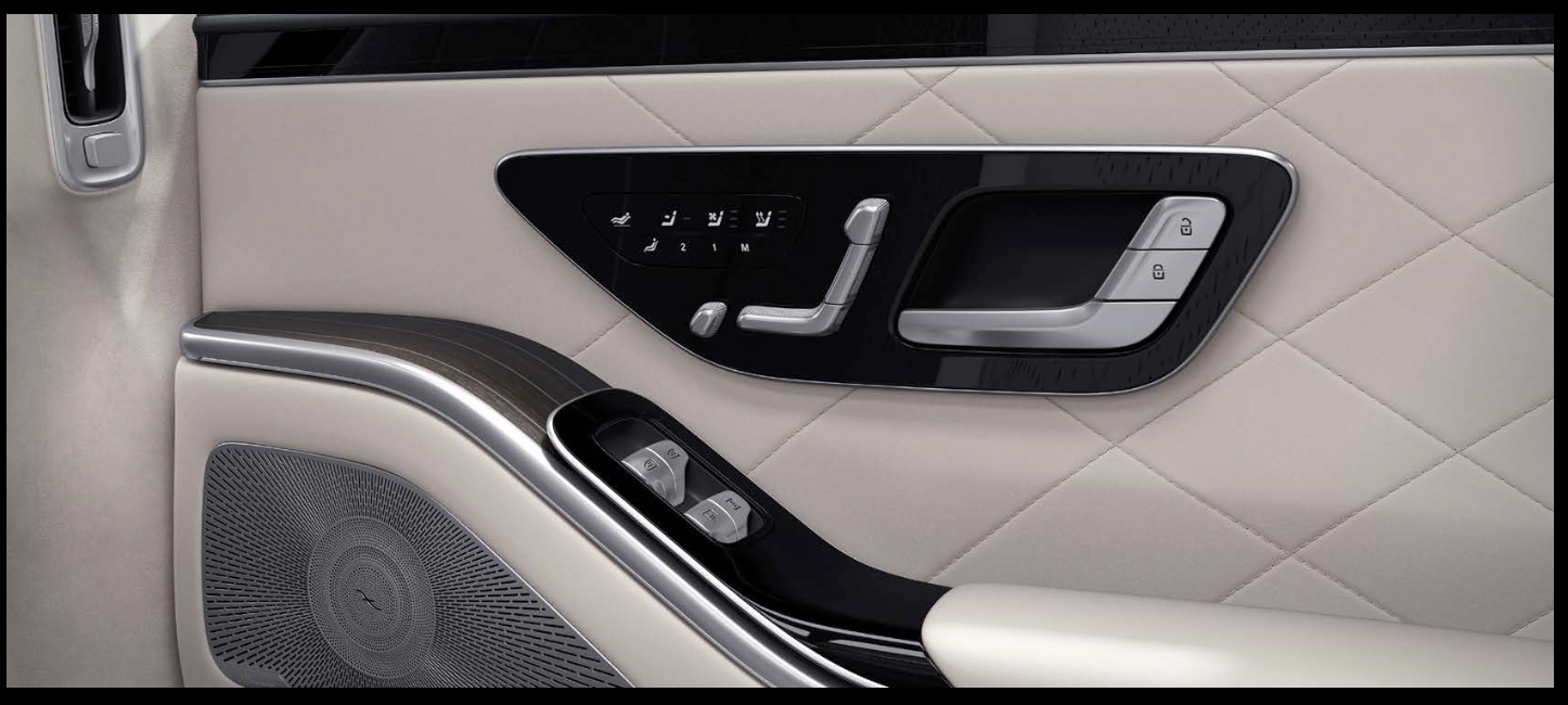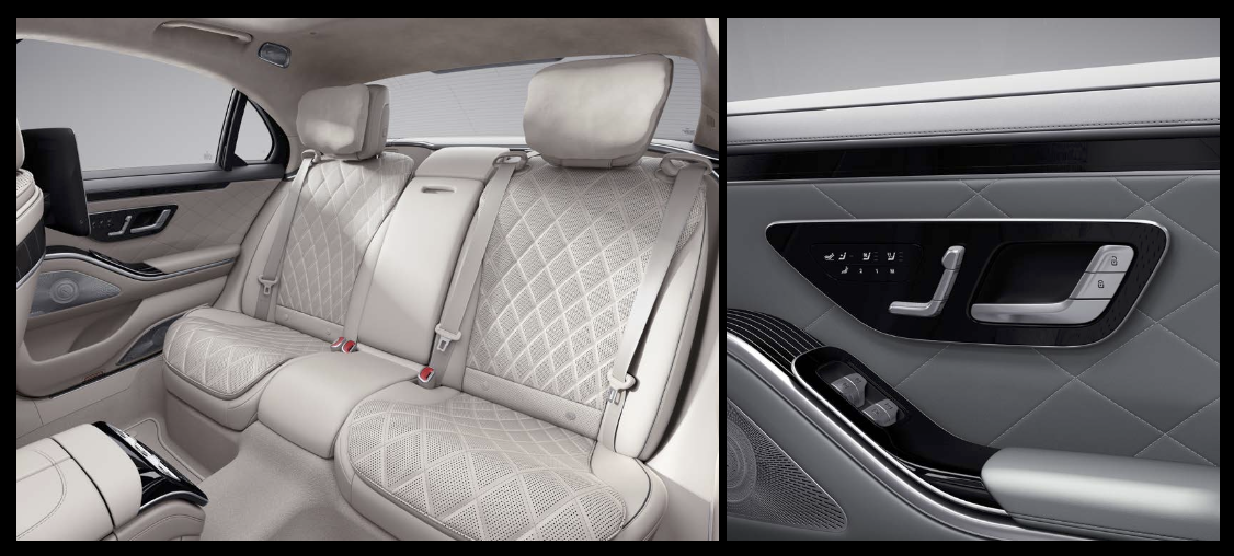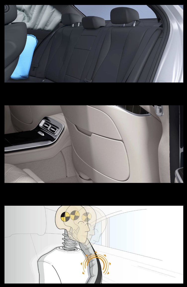 등받이의 각도는 최대 43.5°까지 조정이 가능하며, 시트 바깥 부분의 쿠션백은 PRE-SAFE® 포지셔닝 기능과 함께 탑승자의 승차감과 안전을 지원합니다. 추가적으로 다리 받침대가 지원되며, 최대 50°까지 각도를 조절할 수 있습니다.