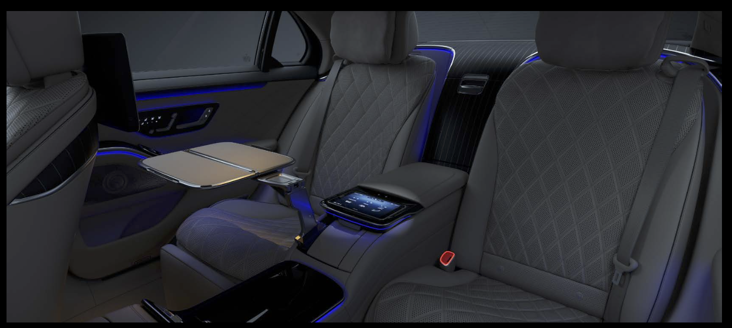 MBUX 뒷좌석 태블릿에는 접이식 팔 받침 또는 비즈니 스 콘솔에 통합된 7인치 태블릿이 포함됩니다.