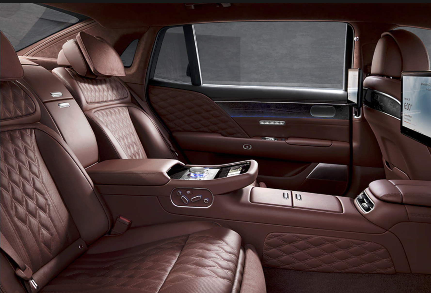 여유 있는 후석 공간과 최적의 시트 설계, 4방향 레그레스트로 라운지의 안락함이 존재 합니다. 전체가 가죽으로 도배 되어 있고 고급스러움이 뭍어 나도록 배치 하였습니다. 하지만 타는 사람이 편안하게 느껴지는 지는 의문이 생깁니다.
