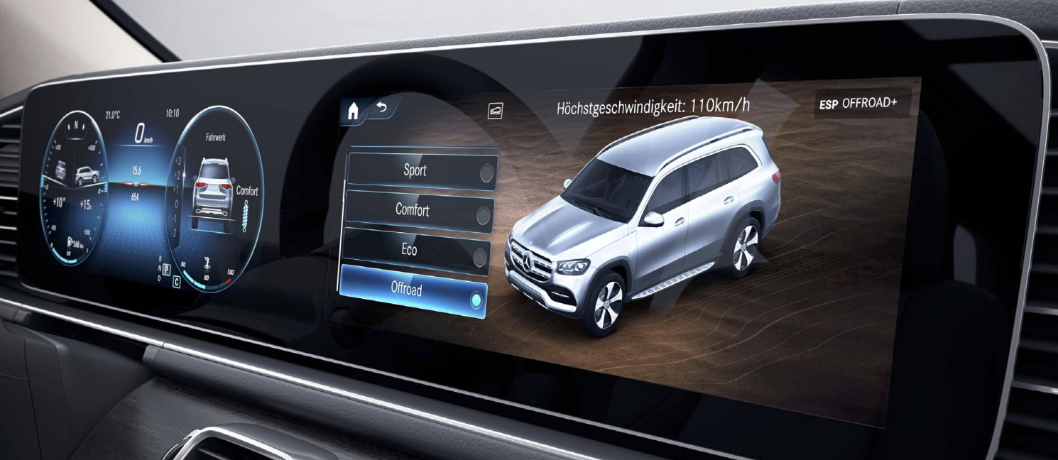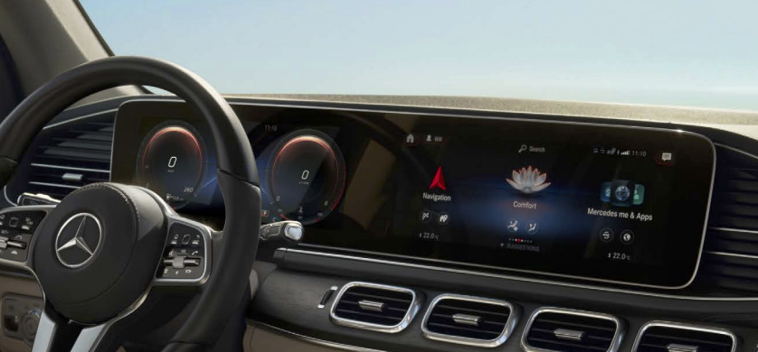 고급스러운 GLS의 콕핏입니다. 대화면 디스플레이와 깔끔한 실내 디자인을 적용하였습니다.