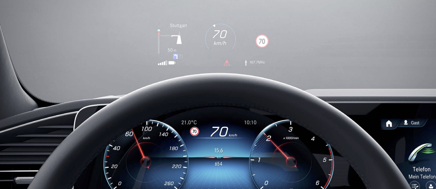 헤드업 디스플레이 간략한 정보를 보여주던 헤드업 디스플레이가 진화하여 차량의 많은 정보를 전면 유리창에 뛰워줍니다.